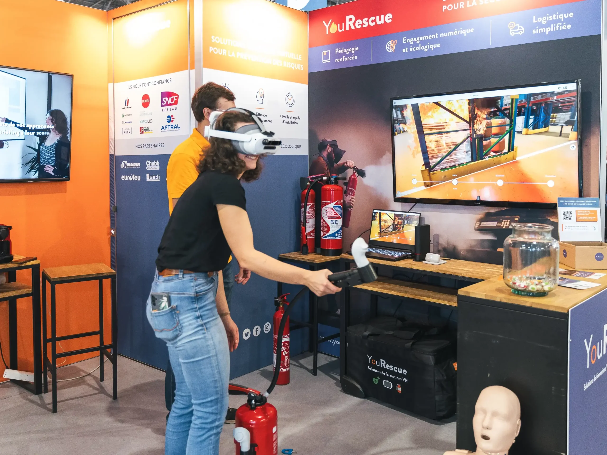 Grâce à la réalité virtuelle et à des extincteurs connectés et vidés, la solution YouRescue contribue activement à réduire l’empreinte écologique des formations aux risques incendie.