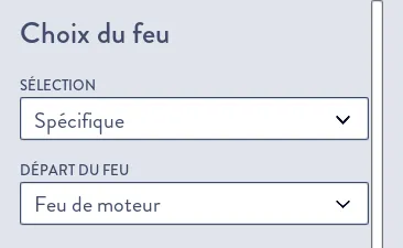 Plusieurs départs de feu sont disponibles dans les différentes sections du bus, mais également à l’extérieur avec le feu de moteur. Vous pouvez sélectionner un départ de feu spécifique avant de lancer le scénario à l’aide des options sur la droite de l’écran.